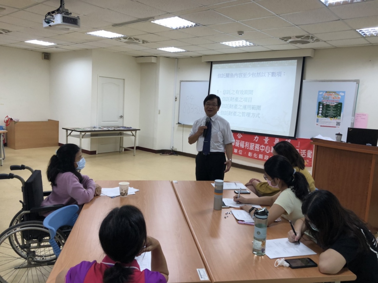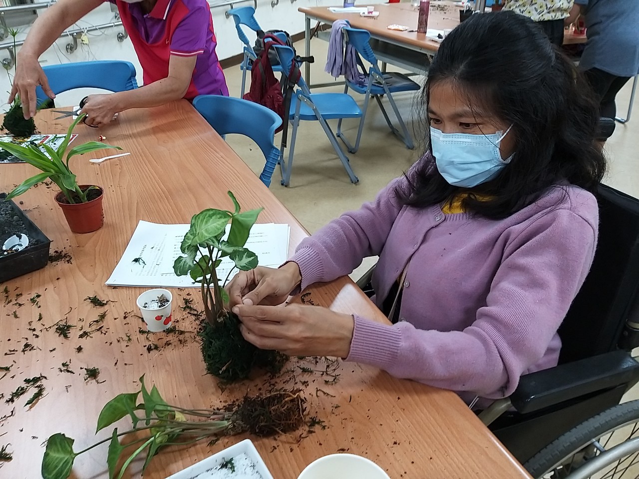 活動內容: 由於身心障礙者特質的特殊性,例如:記憶力、陳述完整性、時間概念、判斷能力等,在法律權益上容易受到不平等的對待,對於身障照顧專業人員及家長,應提供相關的法律概念知識教育;對身障者,也應提供法律及自我保護教育,才能創造一個無歧視的環境。彰化縣身心障礙福利服務中心為促進本縣身心障礙者社會參與及自身權益知能,特辦理「法律小學堂v.s.園藝紛彩」課程,內容包含身心障礙者相關法律及稅務相關知能,另搭配有趣的手作課程,提高參與意願,使身障者有多元休閒活動及增進專業知能之機會外,可獲得普同感、隸屬感,並從過程中學習自我覺察與人建立合作關係的有效方式;活動開放身心障礙者家屬陪同,使其增進情感交流與達到舒壓喘息之功能;使社會大眾於參與活動同時與身心障礙者互動時相互理解。達到「平等融合、力量無限」的目標,共創「美好彰化、希望城市」新願景。